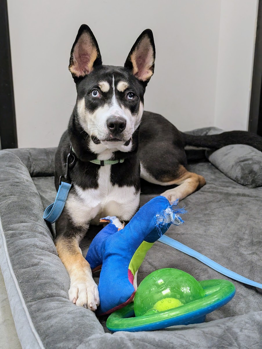 Energy level: Medium-high, he’s a husky mix after all