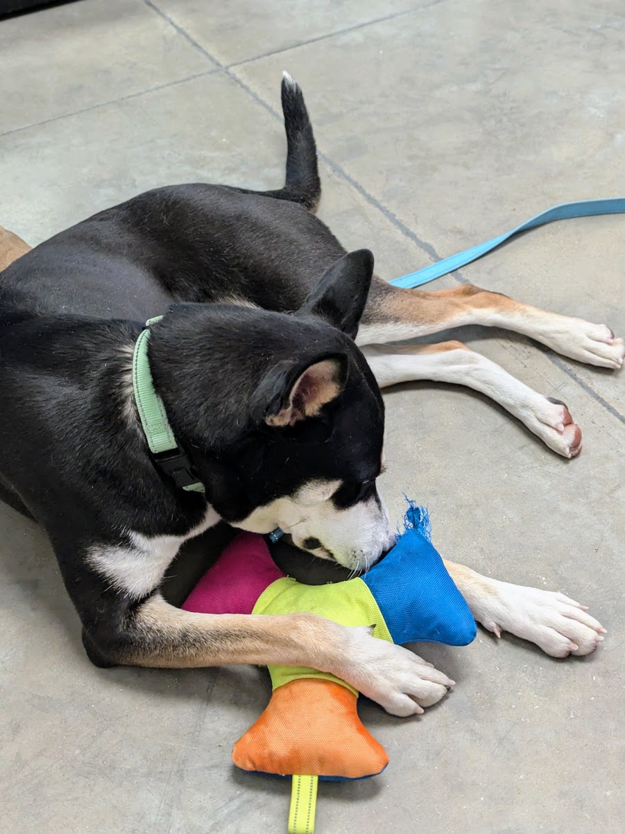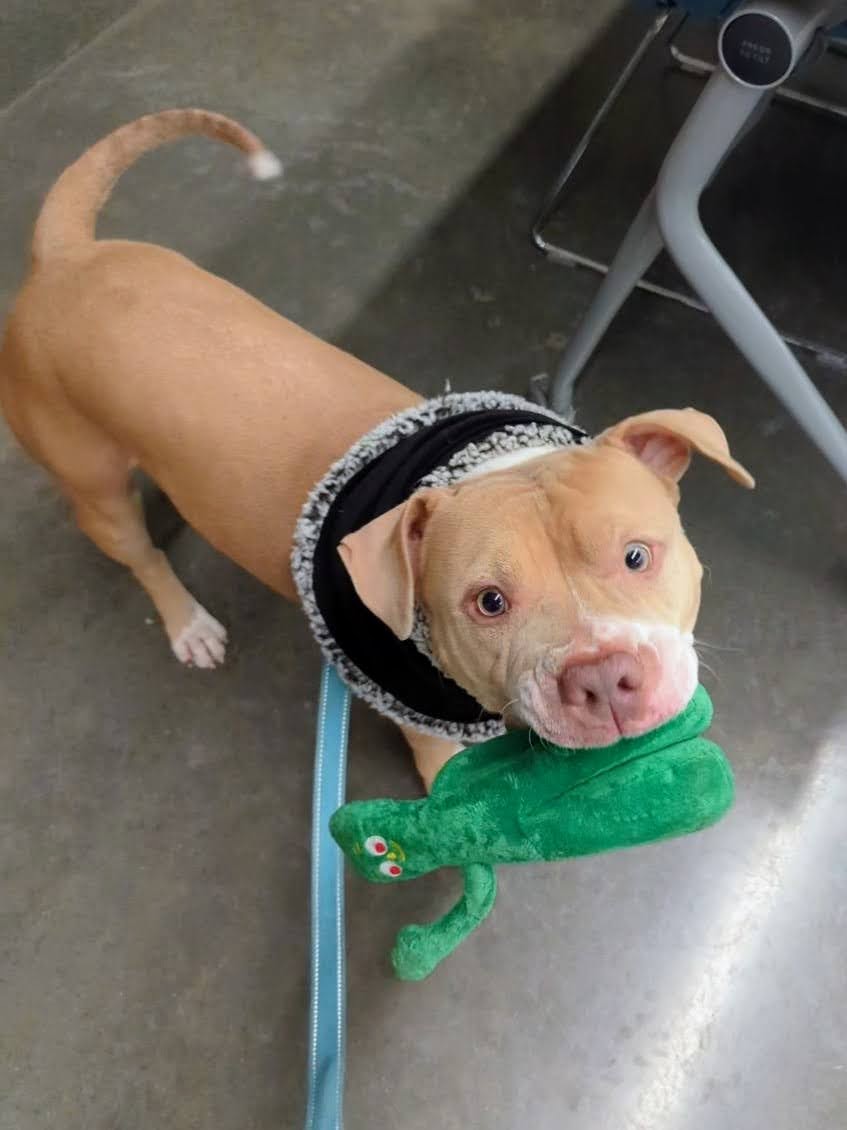 Max is a heart-breaker! He was found in a forest preserve, left to fend for himself, and now knowing him, we just know this sweet guy must have been terrified. Max has a heart of gold, just aims to please, and would love a family to have fun with. He’s a quick learner, will do anything for a treat, and enjoys nothing more than taking a support stuffie on his walks with him. He loves giving kisses and bonding with people, it’s adorable to watch. He’s a good boy with a good heart and he’s ready to share his love with someone!
