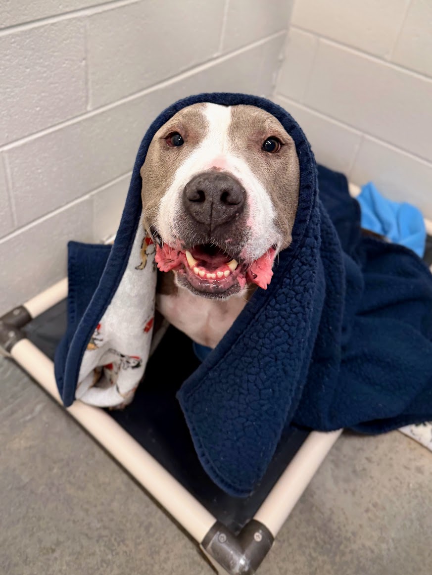 This little guy was found abandoned in a tennis court next to our shelter. He was confused and understandably upset. It took all of a day before this cuddle bug was in our laps craving love and attention! He continues to have the sweetest personality and he’s so darn fun! He’s never had an accident in his kennel and he’s been wonderful with us. There is nothing Ellis loves more than a warm blanket and spending time playing or snuggling up for face massages!