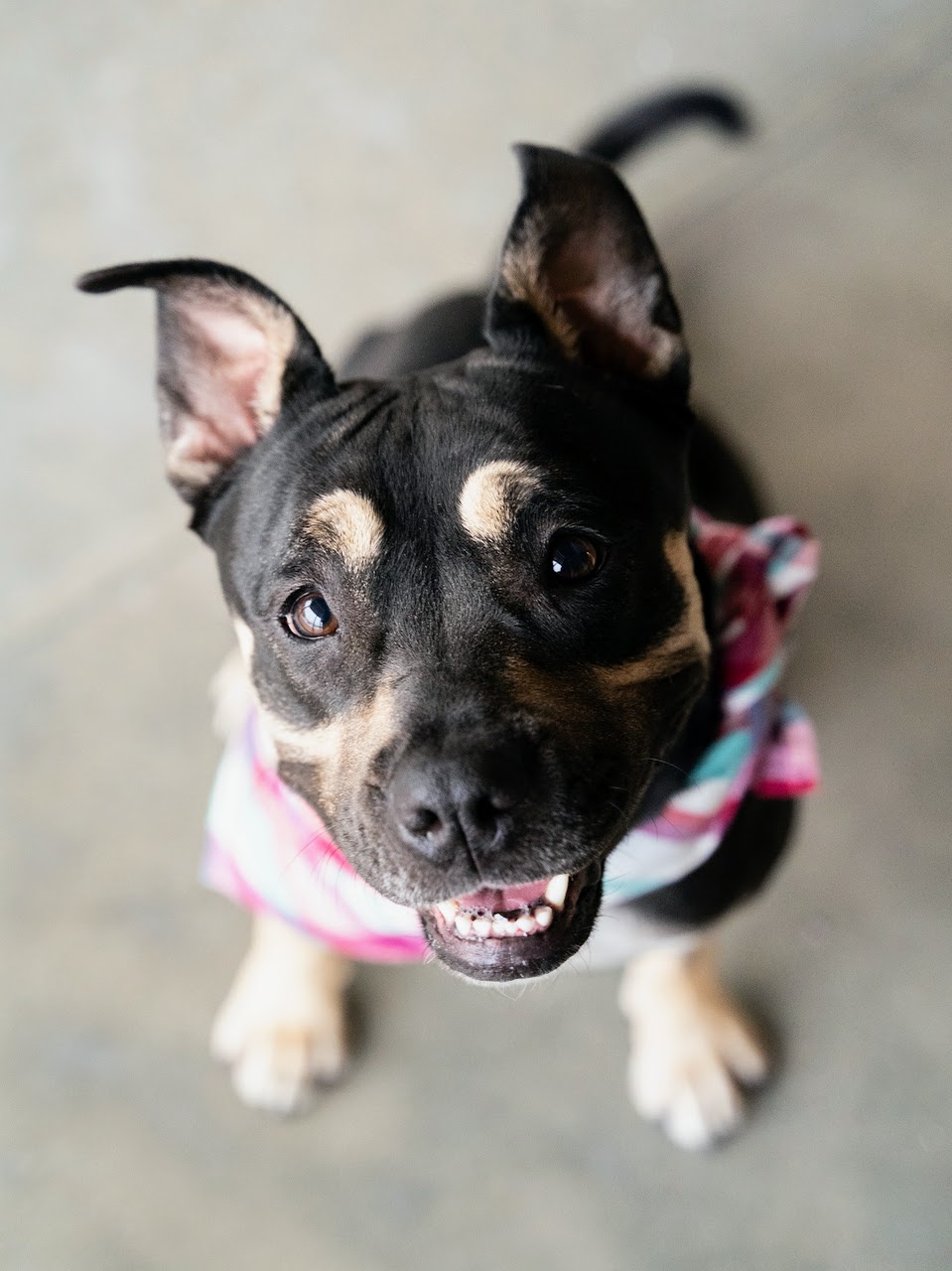 Our boy Bob has had a rough go at life. He came to us as a stray and we quickly noticed that he had trouble breathing. He ended up having a wound at the bottom of his esophagus causing air to leak into parts of his body it should be. This meant that he spent the first few weeks with us on strict crate rest and in recovery. He has since been cleared for action and he is READY to partayyy! This goofball looks like he came straight off the mothership and we question whether he’s an alien or a dog but either way we love him and we think you will too!