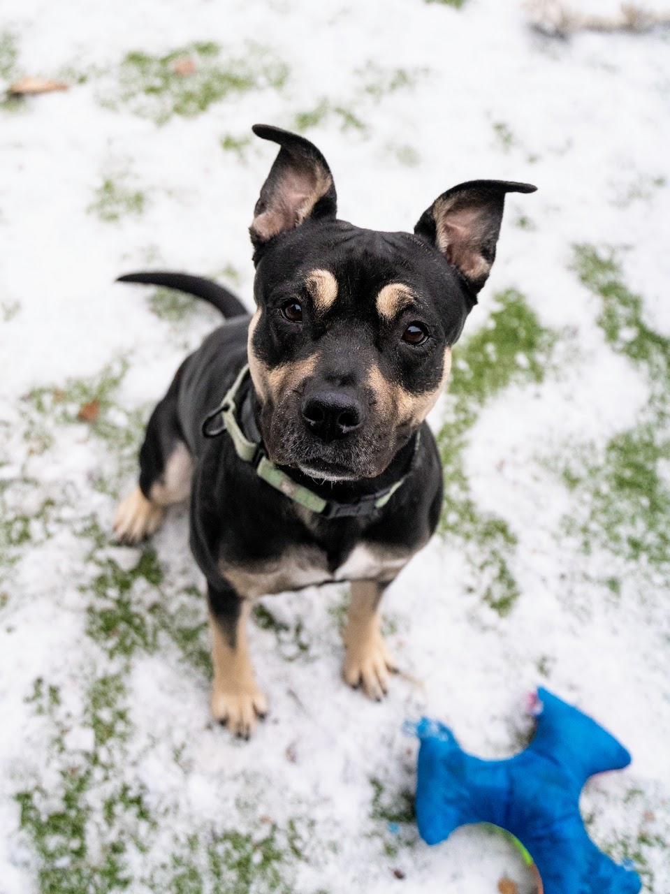 I may look like a big tough guy, but I’m soft as mush for the people I love! I’ve had a rough past including being on the run in the bitter cold winter last year but the team here is doing their best to find my perfect home. I’m a bit of a shy dude at first and it might take a visit or two to warm up to new people, but I’m trying really hard to be the best me I can be. Someone who has patience to help me learn is a must and in return you’ll get endless cuddles and zoomies that’ll make your day! I know I can make someone happy and I’m hoping it’s you!